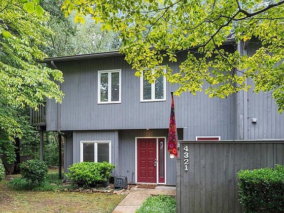 Your perfect opportunity awaits! This charming end-unit townhome in Raleigh's heart exudes character. The open first floor has it all with a sunken living room, ample sunlight, stainless steel appliances, a morning room, and laminate wood floors. Upstairs, the primary suite boasts a vaulted ceiling, loft storage, a balcony, updated tile shower, and a spacious walk-in closet. Two more bedrooms and a full bath complete the upper level. Step outside to a patio, perfect for gatherings, with a serene wooded view. Google Fiber available. Convenient to Umstead Park, Crabtree Valley Mall, Brier Creek, RDU Airport, and more!