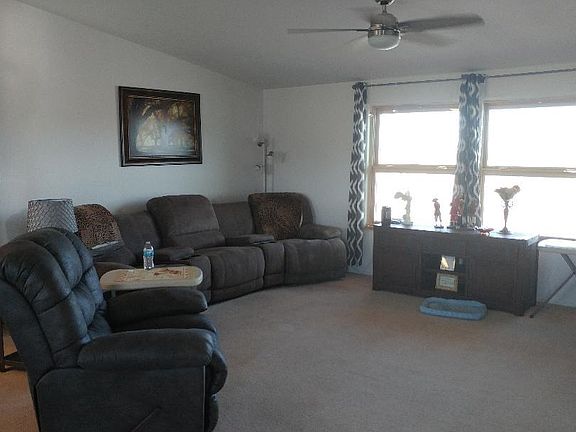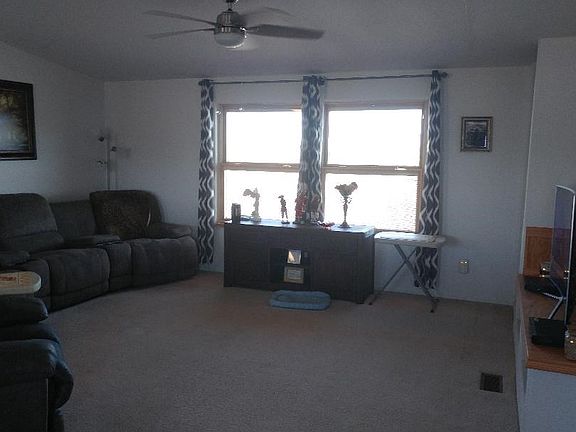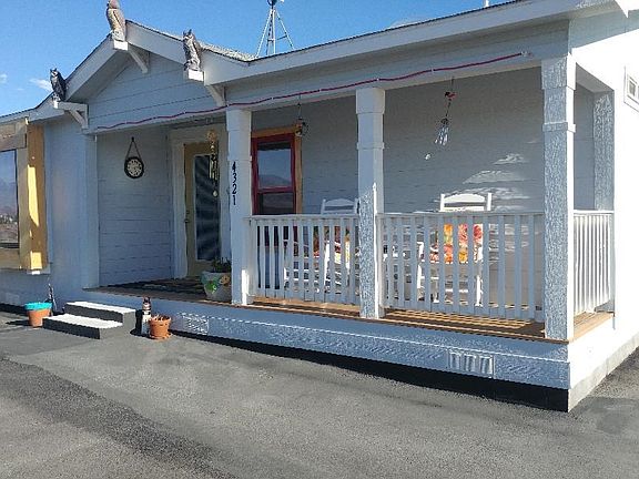 Barely lived in 2006 home has 3 bedroom, 2 bath has 2 custom showers, hybrid water heater, skylights, asphalt circular driveway and awesome mt views. Kitchen has island with breakfast counter bar next to large dining area, some window have built in blinds. Outside is dog run, shed, and conex box that is being used a workshop. There is a concrete pad for parking and the back is rock for easy maintance. Move in ready. Home is 1640 square feet.