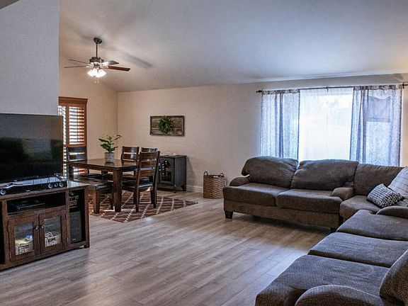 Beautiful ready move in home with some recent upgrades. Large great room with fireplace, opened beam ceiling, and views to dining area and kitchen. Sellers installed new laminated flooring in kitchen, dining, great room, and hallways in Jan 2019, along with new a dishwasher. Kitchen has Corian counters, and Maple Cabinetry. Bathrooms were updated several years ago, but owner just installed new toilets in both bathrooms. Newer AC unit was installed summer of 2018. Cozy rear yard with above group spa, and arbor.