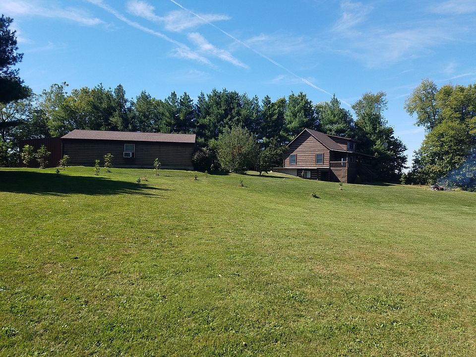 Beautiful views from this log cabin home sitting on 1.85 acres. Great room w/ cathedral ceilings that showcase the craftsmanship of this home. Mud room, master suite & great room on main level. 2 large bedrooms & full bath on upper level. Poured concrete W/O basement has electricity run, walls framed & full bathroom. Laundry room, storage area, water filtration system & one car attached garage also in basement. Geothermal new in 2019, 1/2 HP well pump new in 2019. Large covered front porch & back deck. Outside, mature tress provide privacy. Lg. outbuilding has 2 car overhead door, gas heater, window A/C unit and 200 amp service. Additional space in storage barn & carport. Mid way between Greensburg & Rushville; make this your forever home.