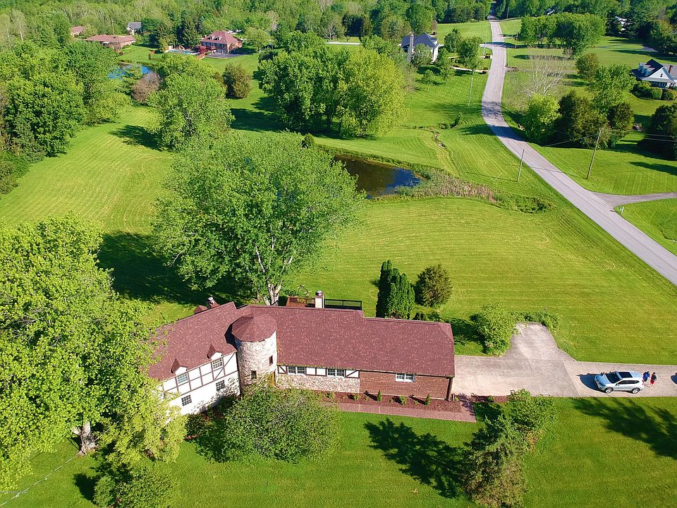 MOTIVATED SELLER! This Completely remodeled inside and out, one of a kind Tudor style home is a MUST SEE home! conveniently located near I-71 and offering over 4000 SQFT on over 5 scenic acres. It features a vaulted entry way with a unique curved stair case that leads in to an open floor plan perfect for family get togethers. The new kitchen and bathrooms are complete with Granite and tile finishes. There are stunning wood floors throughout the entire home. The main suite includes an attached bathroom, a walk-in closet, as well as a sitting/nursery. This home also includes a full in-law/guest suite in the basement equipped with a bathroom, sitting room and mini kitchen with a picturesque view of the pond and beautiful five acres, from the back deck or walk our basement.