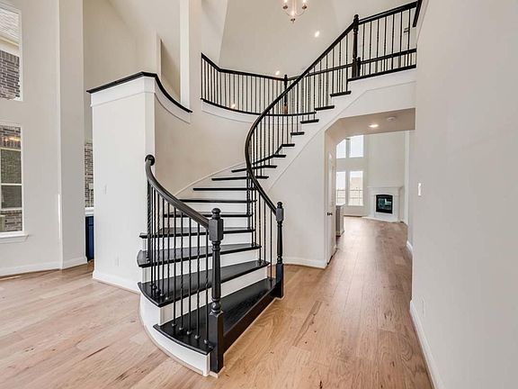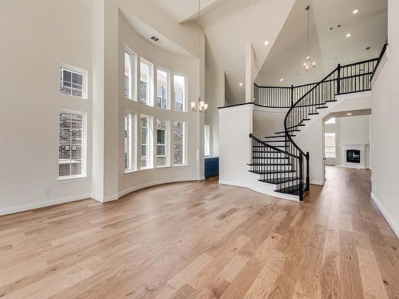 Great drive up appeal with stone exterior. Bright & open home includes curved Full Oak staircase w wrought iron spindles, wood floors, rocker switches & thick door casing & trim. Vaulted family room has cast stone fireplace, Formal Living & Formal Dining. Downstairs Guest Suite, Nursery or home office. Upstairs gameroom & Media Room for the kids. Open Concept kitchen has Quartz slab tops, custom Shaker cabinets, stainless steel appliances, gas cooktop & island for entertaining. Butler's Pantry has slab top. Primary Bath has crisp Marlana vanities & a separate glass enclosed tiled shower. Security & Sprinkler systems. Energy features include R38 ceiling insulation & radiant barrier Roof Decking for low energy bills!