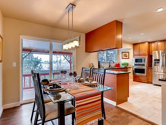 You HAVE to see this STUNNING kitchen! Beautifully remodeled, one of a kind home nestled in lovely Happy Canyon. The home features a gourmet kitchen with stainless steel appliances, granite counter-tops, oak cabinetry, large walk in pantry. The main level is open and bright. The study/den/TV room has a sliding door and large deck. There is a very large covered west-facing deck off the dining room/kitchen. Upstairs you'll find a master suite with Juliet balcony and two other bedrooms. The garden level is finished with a 4th bedroom, 3/4 bath and large family room with wood burning fireplace. Home has been completely updated with new paint inside and out, new energy efficient windows, doors and sliders, solid oak flooring on the main and bedroom levels, and new plumbing fixtures throughout. The detached out building is the size of a very large two car garage with two overhead doors and ready to be transformed to your use.