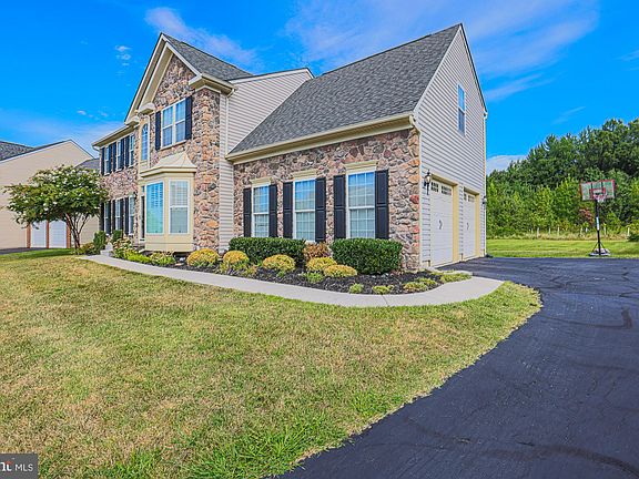 Welcome to this beautiful stone front colonial in Perry Hall with 5 bedrooms/3 full bathrooms on the upper level and 2 half bathrooms (one on the main level and one in the basement). The main level includes foyer, formal living room, formal dining room, powder room, kitchen, morning room and family room. These areas have crown molding, chair rail and trimmed windows and plantation shutters or blinds. The kitchen, morning room and family room are an open floor plan. The kitchen has 42" tall cabinets, granite countertops and a large island. The 20’x10’ morning room has a pellet stove and the family room includes a gas fireplace. There is also a combination mud room and laundry area that opens into an extended length 2-car garage. The upper level boasts two ensuites and a shared hall bathroom for the remaining 3 bedrooms. The house has dual zoned HVAC with a whole house steam humidifier. The basement has a large finished area, as well as a large unfinished area for storage with direct access to the back yard. The back yard has a large 900 square foot stamped concrete patio with decorative sitting wall. The yard backs up to County owned forest conservation area that cannot be built on.
