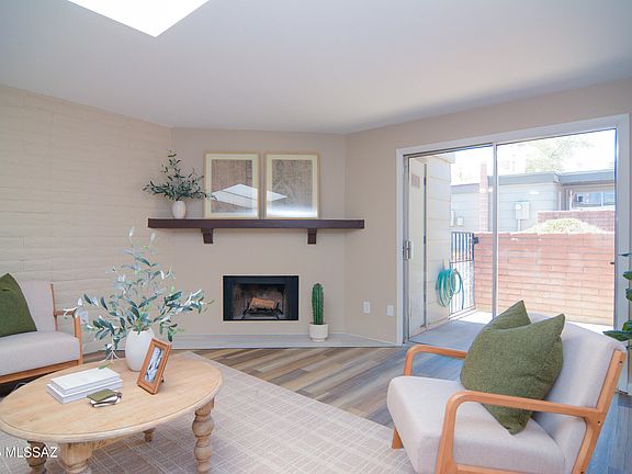 Beautifully remodeled Townhouse. Burnt adobe construction. Located in a convenient Central Tucson Location. Rich wood look LVP flooring. Remodeled kitchen with SS appliances. New interior paint. Updated modern bathrooms. Fireplace in living room. One assigned carport. Charming HOA offers pool, water and front yard maintenance. New light fixtures and door hardware. This home shows beautifully.