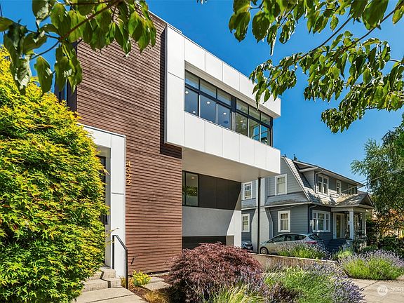 Experience urban living at its finest in this exceptional Wallingford property, boasting spacious interiors & breathtaking views! Featuring a unique reverse floorplan, the main living area opens onto a deck on the upper floor, allowing for PNW panoramic vistas. Sip your morning coffee watching the sunrise over the Mountains & host evening gatherings viewing the city lights. This custom-built home offers sleek lines, high ceilings & abundance of natural light, complemented by contemporary materials. With 4 beds & 3 baths, this residence ensures ample space & comfort. Modern bathrooms are designed for easy maintenance. Additional highlights include a rooftop terrace, backyard space & a 2-car garage. Don't miss the opportunity to call it Home!