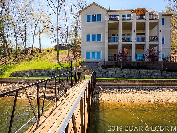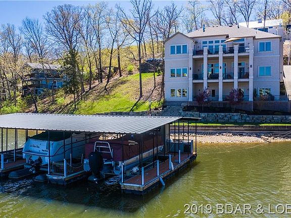 A rare find in the heart of Osage Beach! This custom built home sits in a large no wake cove at the 17 mile marker just moments from shopping, dining & entertainment. The home features hardwood floors showcased w/ vaulted ceilings and main level living complete w/ 2 master suites, office, chef's kitchen, walk-in pantry & a large terrace with views of the cove. The owner spared no expense on the LL by bringing in a steel I-Beam to showcase the vaulted ceilings & open floor plan. The LL offers 2 BRs, full bath, custom bar area, family room, game room & dining area as well as a 2nd covered terrace. The bottom level features the 5th BR & bath, as well as unfinished space currently used as a workshop but could be finished to suit your needs. The gentle lake is a flat walk to the 3 well dock including 3 boat lifts. Addl features include irrigation for landscaping and yard, central vac & both lots on either side of the home can be purchased for ultimate privacy! Call today for a private viewing