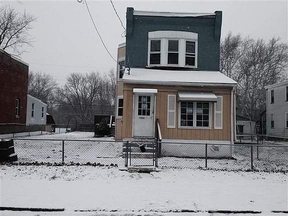 Exterior Features:This house is on a 5,662 sq ft lot. Curb appeal is poor, needs to be updated. Siding is vinyl, possibly wood in the front, and painted brick and in fair condition. Roof is asphalt type in fair condition. Parking available on the street. Nice sized deck and yard in the rear of the property.Interior Features:This is a 2 bed 2 bath house with 1,374 sq ft. Flooring is hardwood, tile and carpet and in poor condition. The kitchen is in very poor condition, missing all appliances, cabinets and countertops.