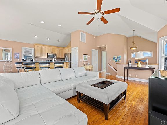 Come see the beautiful ocean views from this lovely Nags Head semi-oceanfront home - that produces great rental income! The house boasts a great location, just a short stroll to the uncrowded Small Street beach access, and is a just the right size at 2400 SF - perfect for an investment, second home or even primary residence. There are 4 total bedrooms - 3 on the mid-level along with two full baths, and one ensuite upstairs, plus another half bath. Head downstairs and you'll find a spacious game room with half bath and step outside to find a private pool, hot tub and outdoor shower. There is tons of outdoor living space - between the outside pool area and the multiple decks! Sellers have done lots of recent updates to include new front and rear top decks, front stairs, top-level rear slider, heat pump and even new bathroom lighting. The beauty bands and some railings have also been painted and 4 new adirondack chairs have been added to the rear fenced in yard - so plenty of seating for everyone around the pool! And if you're a Blue Moon fan, you're practically in the backyard! Make sure to put this home on your viewing list!