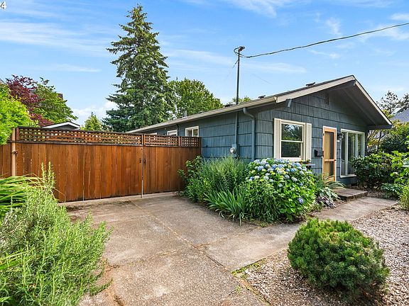 Charming Woodstock Mid-Mod gem! This updated one-level home is airy and bright, offering income potential with a permitted studio. The main house features 3 bedrooms, 1 bathroom, and tasteful finishes throughout. The recently remodeled kitchen boasts stainless steel appliances, tile floors, and quartz countertops. Original hardwood floors run through the house, with new tile flooring in the bathroom, kitchen, and mudroom. Lush landscaping surrounds the fully fenced property, making the backyard a gardener's paradise with raised beds, a variety of herbs, fruits, and blooms. Plus, there's a huge patio ideal for outdoor entertaining. The paved driveway provides convenient off-street parking. The versatile studio offers income potential or could serve as guest quarters, additional living space, a home office, or whatever you desire! This space includes a full bathroom with a large shower, skylights, French doors, a heating system, and abundant natural light. Nestled in the coveted Woodstock area, this stellar property is surrounded by parks, shops, and the renowned eastside dining scene. It offers the best of both worlds: a serene retreat with easy access to urban amenities. [Home Energy Score = 3. HES Report at https://rpt.greenbuildingregistry.com/hes/OR10230706]
