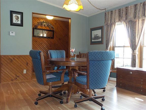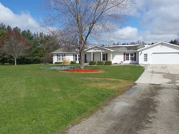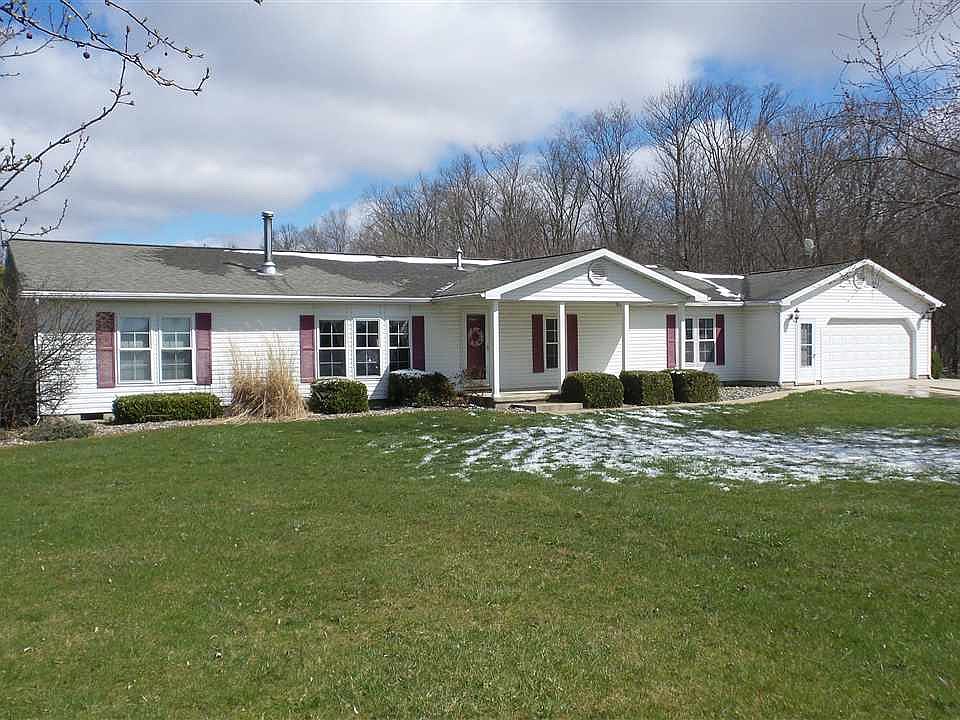Beautiful country setting, 2.87 acres with trees and a very nice pond with a beach area. Home features 1848 square, spacious great room with wood burning stove, 3 nice sized bedrooms, 2 full baths, kitchen with plenty of cabinets, pantry, dining area, and a laundry room with a sink . Attached oversized 24 x 28 garage plus 2 sheds. Enjoy your mornings on the open front porch and your evenings on the deck overlooking the pond. Nice location on a paved road. Low property taxes $493.70 a year. Average electric is $64.00 a month. Move in condition!