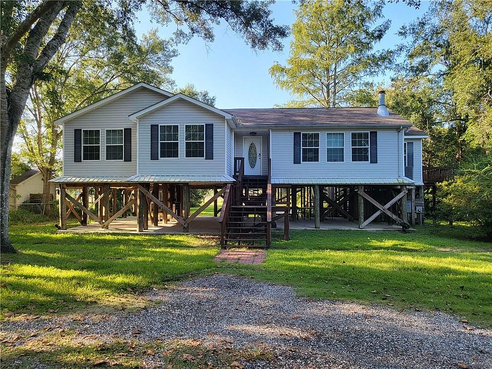 ***Seller will entertain offers between the upper and lower PVRM ranges of $339,000 to $399,000.*** Waterfront Living with Income Potential! This beautiful 3-bedroom, 2-bath home sits on a spacious 1-acre lot with 75 feet of waterfront and direct access to Mobile Bay and the Gulf of Mexico. Built in 2008 and sold fully furnished ( with only a few personal items excluded), this property is move-in-ready or perfectly suited as a vacation rental. Step inside to a welcoming family room with wood floors, cozy fireplace, and neutral colors throughout. The kitchen features a breakfast bar and all the essentials for everyday living or entertaining. The large master suite includes a walk-in-closet, double vanities, a soaking tub, and a separate shower. Outdoor living shines here with a covered deck, gazebo, and plenty of space to create your ideal waterfront retreat. With Airbnb potential, this property offers not only a serene lifestyle but also a strong income opportunity.