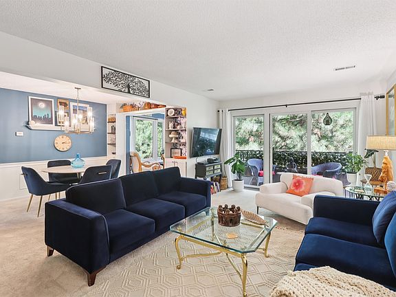 Don't miss out on your chance to own one of the most desirable units in the building! Located on the 3rd floor and offering private wooded views. The living space is open and cheerful. The unique and cozy sunroom is the perfect spot to relax year-round. The kitchen has been updated, as well as the bathrooms. The living room features a gas log fireplace, is open to the dining area, and has access to the covered balcony. Both bedrooms are spacious. Windows in the unit have been replaced. One parking space in attached garage with extra large storage. Additional parking outside and a carport space is available for $25/month. Additional storage space/closet outside of the unit as well. Pet-free and smoke-free building. Recent improvements: furnace and A/C July 2024, water heater May 2025, stove 2023. Great location near the Art Center, downtown, shopping, parks, and easy access to the freeway.