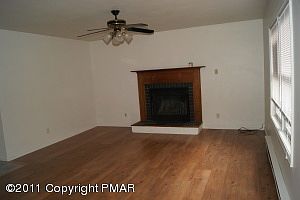Charming Raised ranch perfect for permanent or vacation living!PRICED TO SELL QUICKLY!!Don't Miss!Home has living room with wood fp,wood laminate flooring & overhead fan plus nice size windows,dining area extends from kitchen with overhead fan and sliding doors to back yard,kitchen w/refrigerator,stove,dishwasher and exit to side yard - 3 bedrooms,all with new double door closets-master has 1/2 bath,all bedrooms have laminate wood flooring,master bath off hallway with closet for storage.Basement is full size of home and can be finished for extra living space or storage galore.Lovely flat,cleared lot in back.Front door has leaded glass designed panel & right behind doorway is coat closet; has attic space for extra storage.Newly Painted.Ready to move in!See Virtual Photo Tour under Photos.