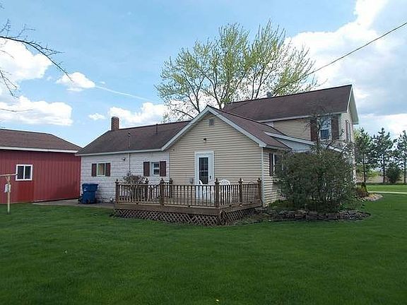 Beautiful country home completely redone, straight and clean. This nice home on over 3 acres has been updated with hickory, custom cabinets, drywall,vinyl windows and siding, high efficient furnace, updated wiring and electric panels and all the things that make a nice home. The floors in the kitchen and dining room are simulated wood, and the kitchen features roll our drawers, a nice pantry and modern appliances. What country home would be complete without a nice garage with heat and water, a garden shed and a real barn. The owners have lived there a long time and spared no expense. The house comes with a newer 5 inch well, complete septic system and an outdoor wood furnace that heats the house, hot water, and garage. Lots of trees and shrubbery complete this classic farmhouse.Additional 90 acres of good hunting and recreational property across the road for sale also by the same owner.