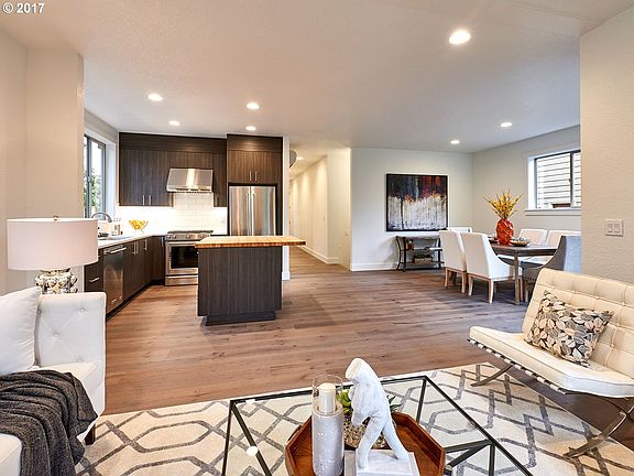 Great location next to Woodstock & Sellwood. Beautiful finishes include hardwoods main floor, quartz counters, tile bathrooms, stainless Kitchen Aide appliances. 4 bedrooms (den can be 5th bedroom), 3 bathrooms, loft. Level & sprinklered yard w/ covered patio. High efficiency measures (large insulation values, tankless water heater, and ductless heat pump with A/C). Energy Trust of Oregon Score to follow. Home is complete and ready.