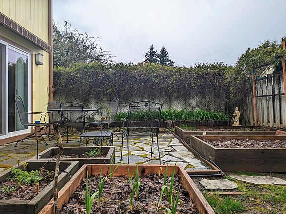 Newer constructionPrivate yard and patioElectric rangeFull attached bathFilled with natural lightGarden bedApple tree