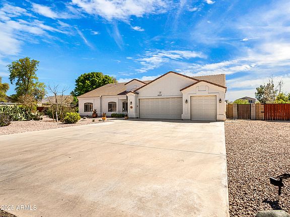 Discover this rare, 1 of just 13 custom homes, on a Private Street in Laveen. Situated on a full acre of unincorporated, Maricopa County land, this property boasts mature landscaping, a rectangular pool with waterfall, and stainless steel BBQ island—perfect for entertaining. The immaculate interior features vaulted ceilings, ceramic tile flooring, and plantation shutters throughout. Enjoy a Split Floor Plan, with a spacious kitchen offering a propane stove, modern appliances, wine fridge, & abundant cabinetry. The primary suite includes a large walk-in closet & an ADA-accessible shower. Additional highlights: Dual RV gates, a 3-car garage w/ epoxy floors, and NO HOA! Bring all your toys and enjoy rural privacy with city conveniences nearby—plus South Mountain just minutes away! Surrounded by Mountain Views to the South, this property benefits from a 3 car garage with one of its bays having a dedicated mini-split AC and large attached storage, flood irrigation, sprinkler irrigation, fire pit and fireplace. All this property can be yours and offers the flexibility for livestock, gardening, or simply enjoying open space. With easy access to shopping, dining, and the Loop 202, this home combines rural privacy with modern convenience.
