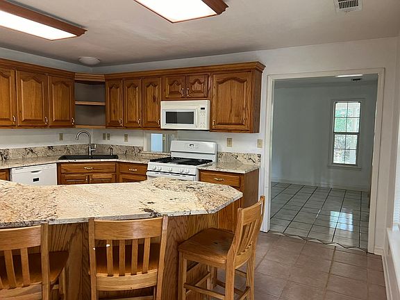 This spacious 4 bedroom, 3.5 bathroom home boasts high ceilings, ceiling fans, and dual vanities for added convenience. The kitchen features granite countertops and bar seating, perfect for entertaining guests or enjoying a quiet meal at home. Relax on the covered porch or take advantage of the off-street parking. With plenty of room to spread out and spacious bedrooms, this house is the perfect place to call home. Don't miss out on this amazing opportunity to own a large house at an affordable price!
