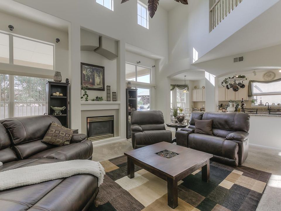 Welcome to this meticulously maintained home boasting wonderful architectural features & tons of that great New Mexico natural sunlight. Inviting floor plan w/formal living & dining areas, open kitchen with granite countertops, plenty of cabinets, island, breakfast nook and counter space, perfect when entertaining! Stunning dual stairway, decorative nichos, ledges, raised ceilings in family room & clerestory windows are just a few wonderful features. The Owner's suite is located on the main level with walk in closets a garden tub & dual sink. Upstairs living area, office or playroom + 3 generous sized bedrooms & 2 baths. Perfect east facing backyard, enjoy cookouts and those beautiful fall evenings. Oh & it's freshly painted, newer TPO roof & refrig air! This could be your ABQ Dream Home!