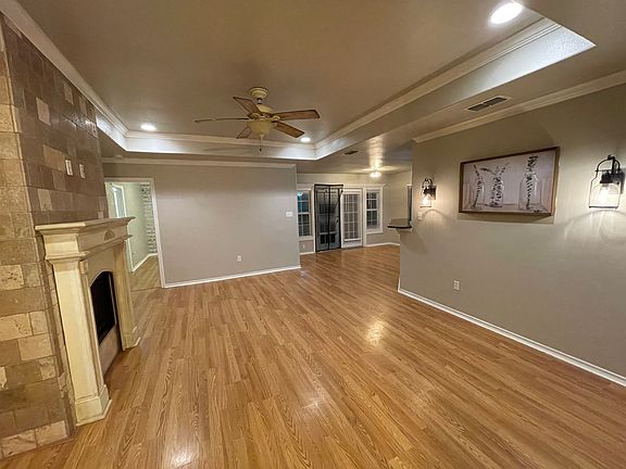 Welcome to this charming 3-bedroom, 2-bathroom home nestled in a peaceful, family friendly neighborhood. Spanning 1,405 square feet of thoughtfully designed living space, this property offers comfort and convenience in every corner. The living room, with its elegant tray ceiling, warm lighting, and fireplace creates a welcoming atmosphere perfect for relaxation and entertaining. The primary bedroom is a true retreat with ample space under a tray ceiling. Just as impressive is the primary bathroom featuring double vanity sinks, two separate closets, a stand up shower, and a bathtub to relax after a long day.