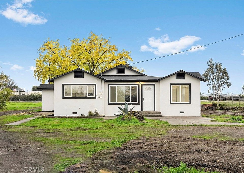 Welcome to your modern farmhouse escape at 4324 County Road HH in Orland, where open space, thoughtful upgrades including a BRAND NEW ROOF, and small-town charm come together on 1.65 acres just minutes from the heart of town. Located just across Interstate 5, this property offers the peace and privacy of a country setting while still being a short drive to Orland’s schools, shopping, and everyday conveniences, including the nearby Butte College campus. With easy access to I-5, commuting is simple while still enjoying the slower pace of rural living. This beautifully renovated 3-bedroom, 1-bathroom, 1,095 sq. ft. home has been refreshed from top to bottom with fresh interior and exterior paint, brand-new luxury vinyl plank flooring throughout, and a fully remodeled kitchen and bathroom. While the updates bring a clean, modern feel, the home’s classic farmhouse character remains intact. The original wood-burning stove, framed by built-in bookshelves, creates a warm and inviting focal point in the living room and sets the tone for cozy evenings at home. Two bedrooms are located just off the main living space, offering flexibility for sleeping areas or a perfect home office setup. Down the hallway, you’ll find the third bedroom, a shared utility space, and a stunning remodeled bathroom designed with both style and function in mind. The bathroom features beautiful tile floors, dual sinks, a modern backlit mirror, and a spacious walk-in shower with quartz tile surround and a striking black honeycomb basin that ties the space together seamlessly. The remodeled kitchen is equally impressive, offering stainless steel appliances, beautiful countertops, and ample cabinetry to keep everything organized and within reach. Mini-split systems throughout the home provide efficient, year-round comfort, making this an all-electric and energy-conscious property. Outside, the land invites you to dream big. With 1.65 usable acres, there’s room for gardening, animals, a shop, or creating your ideal outdoor entertaining space. This is a rare opportunity to enjoy country living with modern comforts, all just minutes from town. Whether you’re dreaming of a small homestead or simply more space to breathe, 4324 County Road HH is ready to welcome its next chapter.