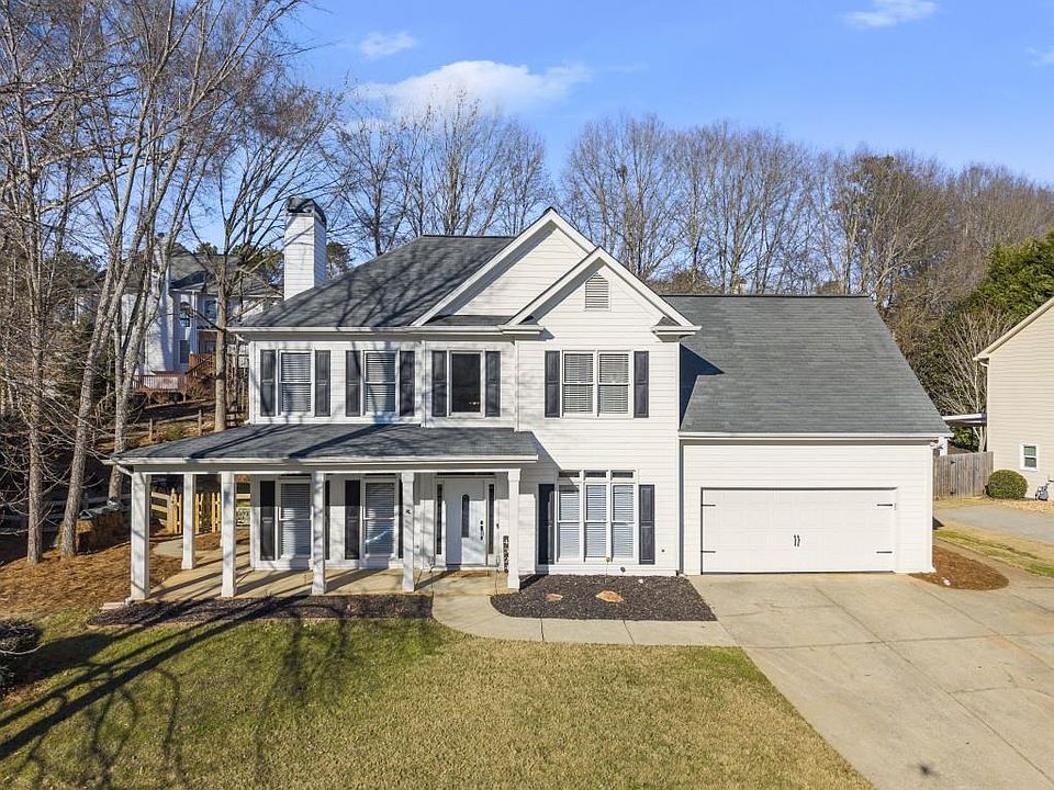Welcome to this beautifully updated home in the highly sought-after North Gwinnett School District! This property offers a truly exceptional outdoor living experience, featuring a custom saltwater pool with a waterfall hot tub and a separate stone fire-pit area, creating a backyard oasis that's perfect for relaxing or hosting gatherings with family and friends. Situated on a quiet cul-de-sac, this home boasts fantastic curb appeal with its charming wraparound front porch. Step into the two-story foyer to discover newly refinished hardwood floors and a freshly painted interior, filled with natural light that creates a warm and inviting atmosphere. The fireside family room flows seamlessly into the stunning kitchen, which features stainless steel appliances, granite countertops, ample cabinet space, and a large sunroom addition with oversized windows overlooking the pool and backyard. Adjacent to the kitchen, the formal dining room provides the perfect space for hosting meals. The main floor also includes a versatile bonus room, ideal for a home office, playroom, sitting room, or even a bar area. Upstairs, the spacious primary suite offers a luxurious bathroom with a soaking tub, separate shower, and double vanity. Three additional bedrooms and a Jack-and-Jill bathroom with a double vanity complete the second floor, ensuring plenty of space. The community offers an array of amenities, including a junior Olympic-sized pool, a splash pad pool, tennis courts, and a playground. Additionally, the neighborhood is surrounded by walking trails, parks, and the Chattahoochee River protected area. Located just five minutes from Suwanee Town Center, you'll enjoy access to vibrant community events such as festivals, farmers markets, and outdoor concerts. With top-rated Level Creek Elementary and North Gwinnett schools, don't miss the opportunity to call this incredible property your new home!