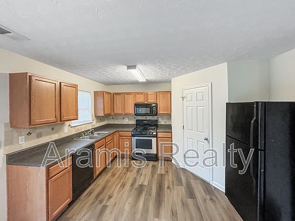 IF YOU READ THIS, THE PROPERTY IS STILL AVAILABLE. APPLICATION TAKES 3-5 DAYS TO PROCESS. Lock in this great rate for 17 months! Come home to this charmingly delightful 2-story, 3-bed/2.5-bath traditional home in a corner lot, nestled in the suburban oasis of Grant Forest with easy access to Atlanta Downtown and Atlanta International Airport. Marvel at the clever partitioning of the main level as it offers a seamless transition between the living room, dining, and kitchen areas. The kitchen is a chef's dream, with appliances in sleek black such as a gas stove, microwave, refrigerator and dishwasher, complemented by stained wood cabinets, laminate counters, a walk-in pantry, and a view to the family room. Glass doors from the eat-in area lead out to the patio with a great view of the large backyard. The family room is a perfect blend of light and airy, with a cozy warmth added by the decorative fireplace. The oversized master bedroom has vaulted ceilings for added overhead space, and an ensuite bathroom with double vanities, a separate shower, and a soaking tub for relaxing baths at the end of a long day. Two full bedrooms and a hallway bathroom complete the ensemble for the upper level. There is a laundry room with washer and dryer hook ups, and the driveway leads to a 2-car garage. A mix of LVP and carpet in neutral tones are installed throughout the interior. A Walmart Supercenter is just 4 minutes away along Anvilblock Rd, with other supermarkets such as Food Town Market and Parker's Grocery within 6 and 9 minutes. And of course, the best place to shop for groceries and fresh produce is the Atlanta State Farmers Market, just 16 minutes away. The 150-acre market selling local produce, assorted meats & cheeses, is an excellent place to visit during weekend mornings to replenish your pantry. For shopping, Ellenwood Town Center is just 5 minutes away, with other malls such as Fairview Oaks, Lake City Shopping Center, and The Gallery at South Dekalb providing alternate options for retail shopping, dining, commercial services, and entertainment within an 11-minute radius. For recreation, Grant Road Park, Bouldercrest Park, and Pine Circle Park provide outdoor spaces for picnics, playgrounds for kids, baseball fields, tennis courts and basketball courts. Sugar Creek Golf and Tennis Club is only 8 minutes away as well and offers a beautiful and well-maintained golf course, tennis courts, with a delicious menu to booth. All Aramis Realty residents are enrolled in the Resident Benefits Package (RBP) for $50.00/month which includes liability insurance, credit building to help boost the resident's credit score with timely rent payments, up to $1M Identity Theft Protection, move-in concierge service making utility connection and home service setup a breeze during your move-in, our best-in-class resident rewards program, on-demand pest control and much more! More details upon application approval. The lockbox will work from 8:00 am to 7:30 pm, seven days per week. Professionally managed by Aramis Realty. BEWARE. SCAMMERS ARE RAMPING UP AND CREATING FALSE ADS USING OWNER'S PICTURES TO SCAM PEOPLE. FOR THIS REASON, ALL OF OUR PROPERTIES HAVE LIVE CAMERAS AND ALARMS. INSTRUCTIONS WILL BE GIVEN TO YOU PRIOR TO YOUR VIEWING. IF YOU ARE ASKED TO PAY CASH TO ANYONE, YOU ARE BEING SCAMMED! CALL THE POLICE IMMEDIATELY