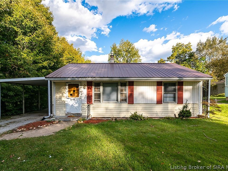 Fantastic opportunity to own this home that is located across from Indiana University Southeast, either as your primary or as a rental! This 2 bedroom, 1 bathroom home has original hardwood floors throughout, a cozy eat-in kitchen with updated cabinets and countertops and a lovely view from the deck off the back of the house that includes an accessible ramp to the 1 car carport. The backyard consists of a large wooded lot with a shed. HVAC was replaced 5 years ago, water heater replaced 3 years ago and electric has been updated to 200 amp. Refrigerator, range/oven, microwave, clothes washer and dryer all stay so this home really is move-in ready! Square footage, taxes, and school systems are to be verified by the buyer(s) or Buyer's Agent if critical to the buyer(s).