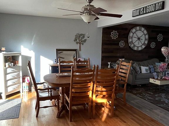 This is the "footprint" of a 3 bedroom house, b-u-t it was built as a two bedroom upstairs ( the 2 small bedrooms are one LARGE bedroom in this property) & one good size bedroom in the entirely finished lower level with a side door walk-out. Living Room, Dining ,Kitchen is all opened up. Nice natural light through out. Most Buyers would probably want to update the kitchen, but at this "price-point" with the huge multi-level deck, lots of parking && a 1,400 sq. foot garage with electric you can do whatever the hell you want to do after you move it! The real estate taxes on this property are HALF of what they would be a half mile to the North in PA!