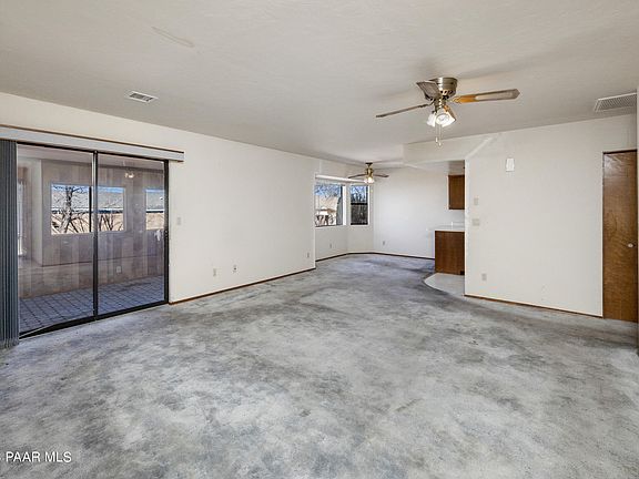 Enjoy this quiet, desirable Prescott Valley unit #19 neighborhood home in the heart of Prescott Valley. No HOA! Low maintenance landscaped front and backyard. This home is situated on a larger lot for this area with space for RV/Trailer parking and storage, plus the backyard has a large shed for additional storage. Mature fruit trees which include plums, apples and peaches and room to plant your ideal garden!. Great space for entertainment! Roof was replaced in 2017. The interior has a split floor plan and an enclosed Arizona room giving you additional space. Open kitchen, dining and living room areas great for gatherings. Perfect property for a first time home buyer or a young family willing to give it new flooring and a coat of fresh interior paint. Close to all Prescott Valley amenities