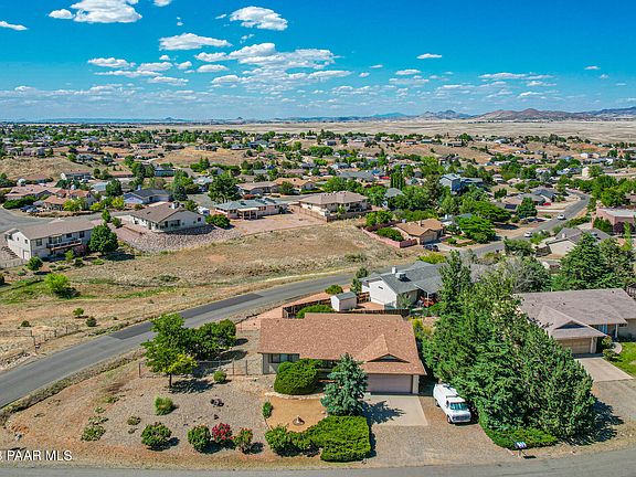 Welcome to this charming split 3-bed, 2-bath home on a spacious .34 acre lot. Original features could use some updating, recent improvements include a new roof in 2020 and an electric HVAC system installed in 2012. The deck and trim have also been freshly painted, enhancing the home's curb appeal. Ideal for first-time buyers, in a quiet neighborhood without HOA. Situated on a corner lot, the exterior is adorned with beautiful rose bushes. Take in the picturesque 180-degree views from the back deck Prescott Valley offers a wide range of amenities and attractions. Come see for yourself all this home has to offer.