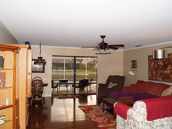Large three bedroom, two bathroom home with an open, split bedroom plan. Kitchen has breakfast bar and beautiful granite countertops. All wood cabinets. Master bathroom has dual sinks and vanity. Come home after a hard day and relax on your screened in lanai with a view of your private pool as well as a river. Cozy up in front of your wood burning fireplace on chilly winter nights. Large utility room with pantry.