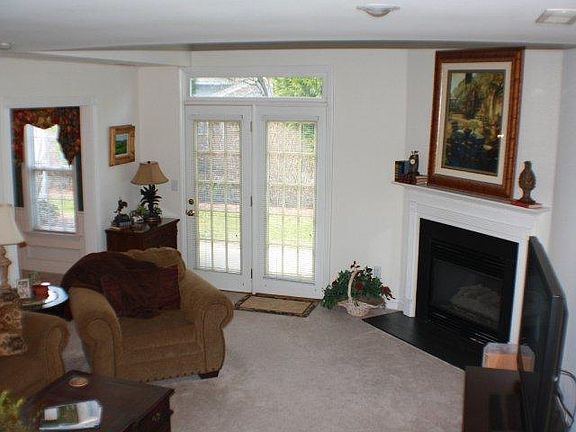 Open and flowing 2Br 2/1 Bath upscale townhouse. Loft could be third Br. Soaring two story gas fireplace with tremendous mantle. Large kitchen with walk in pantry and huge banks of cabinets. Master suite is quite large and has a sunken tub and spacious walk in closet Private patio off back of home with flowering shrubs and tall trees. This home is very warm and cozy and feels much larger than the 1700 square feet it holds. Across the street from Tanglewood park where you can play two championship golf courses, ride horses or bike the great trails. New carpet and some hardwood floors. Comes with the use of washer/ dryer and refrigerator. Private setting in great community. Fantastic school system and restaurants and shopping in walking distance. This has been a non smoking unit. New carpet in 2018- new tile floors in kitchen and new Hardwood floors in dining room. Lots of more photos available.