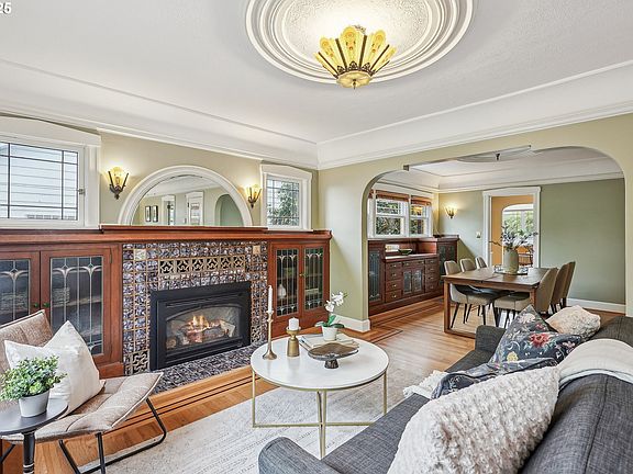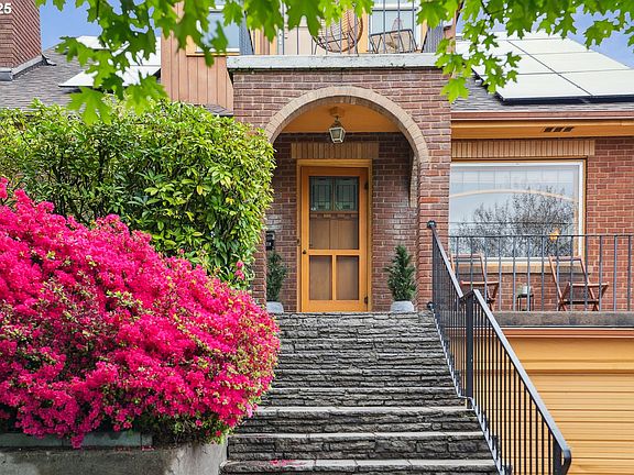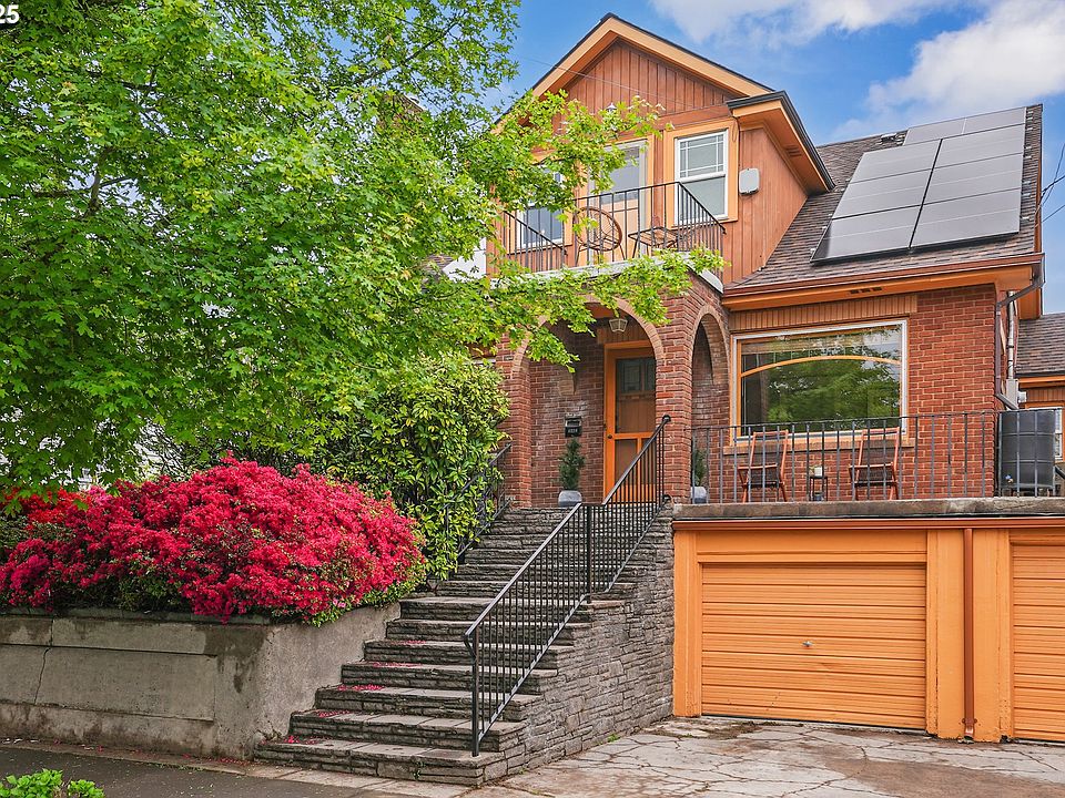 Welcome to this beautifully maintained, updated, custom-built bungalow on a picturesque street in the heart of Creston-Kenilworth. An expansive porch sets the tone for what’s to come. Step inside to a light-filled formal living room featuring hardwood floors with mahogany inlay, stunning built-in hutches with leaded glass on both ends of the room, & a fireplace with a gorgeous period surround. The formal dining room is perfect for gatherings & has more original built-ins, while the freshly updated kitchen impresses with new quartz counters, subway backsplash, a new high-end Miele gas range and dishwasher, stainless steel appliances, and easy access to the yard. The main level offers 2 comfortable bedrooms and a full bathroom showcasing vintage tile work, a pedestal sink, & a soaking tub combination. Upstairs, you'll find 3 additional bedrooms along w/1-full and 1-1/2 bath. A thoughtful redesign already priced out could easily create a luxurious primary suite, creating a 3/2 configuration upstairs. The finished lower level provides a den/office, a full bath, a laundry room, and abundant storage, ideal for today's flexible living needs. There are 2 separate garages with direct home access. Easy entry into the lower level is possible for a future ADU or multigenerational lifestyle. Outdoor spaces abound, including a large front porch area, a balcony with views of the West Hills, & a private backyard oasis featuring a stone patio, gardening areas, and a grassy area all perfect for entertaining. Addl highlights include fiber-optic internet, a new roof, seller-owned solar panels, beautiful copper gutters, updated mechanicals, & oversized structural timbers & framing. The home sits on a neighborhood greenway & boasts a 98 bike score. This location has easy access to both NE and SE neighborhoods, cafes, groceries & downtown, making this an ideal location for any family. With this home's unique size and layout, the possibilities are endless. [Home Energy Score = 4. HES Report at https://rpt.greenbuildingregistry.com/hes/OR10237601]