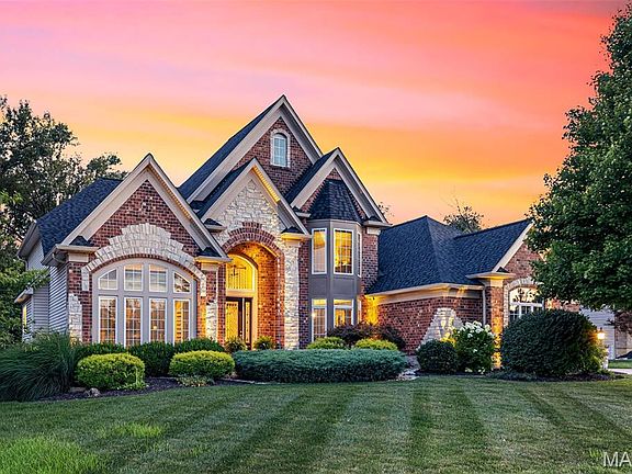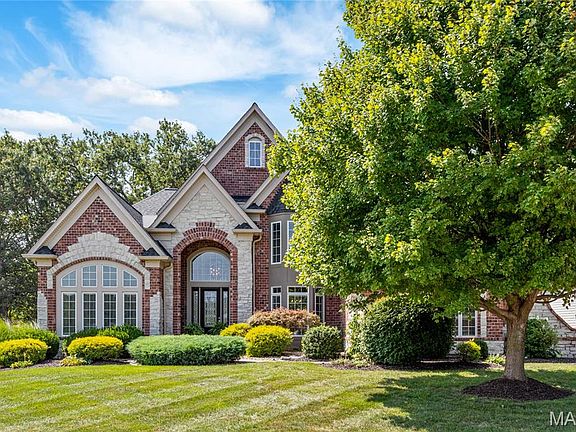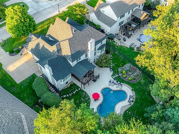 This spectacular 1.5-story brick and stone estate, built by renowned Arbor Homes, is situated on a beautifully landscaped 0.5-acre lot and offers timeless elegance with modern comfort. A grand 2-story foyer with a floating staircase welcomes you into an open, light-filled floor plan featuring rich hardwood floors throughout the main level. The private study boasts 12’ ceilings and custom built-ins, while the formal dining room is framed by elegant arched entryways. The great room features soaring 2-story windows and a stunning marble fireplace. Recenly updated kitchen includes 42” custom buff cabinetry, premium stainless appliances, walk-in pantry, and opens to a vaulted hearth room with floor-to-ceiling brick fireplace. A bay-windowed breakfast room and atrium door lead to the covered deck—perfect for outdoor dining. The luxurious coffered-ceiling primary suite includes a spa-like bath and a custom walk-in closet. Front and rear staircases lead to three upper-level bedrooms and two full baths. The finished walk-out lower level features a large rec room, game area with wet bar, dining space, and full bath. Enjoy resort-style living with a gunite pool, spacious patio, and oversized 3-car garage.