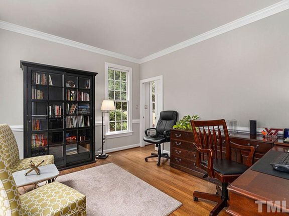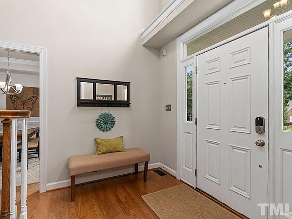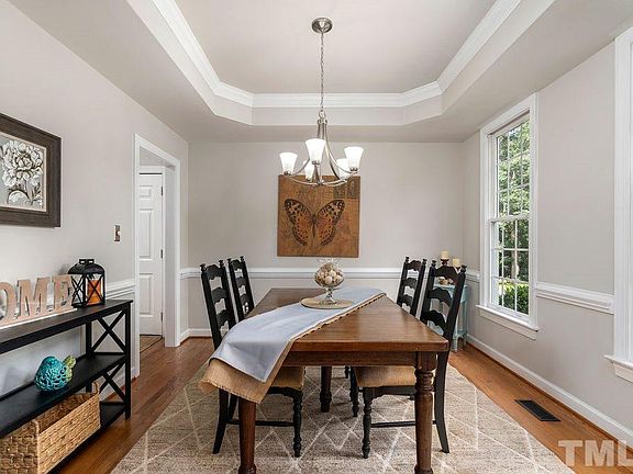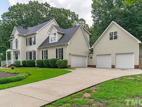 NEED EXTRA Space AND a large FENCED-IN yard? You FOUND it! This stately home sits on over 1/2 acre w/a full back yard privacy fence. Entertain on the deck and let the dogs run. Add'l over-sized garage w/epoxy floor is perfect for the car enthusiast, a perfect "man cave/she shed" - endless possibilities w/huge storage area. The interior welcomes you w/hardwood floors on the main level, new SS appliances, spacious bdrms upstairs & 3rd floor bonus + storage. Close to KRAFT YMCA, Lake Wheeler & NO HOA!