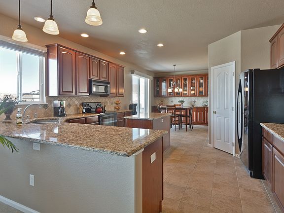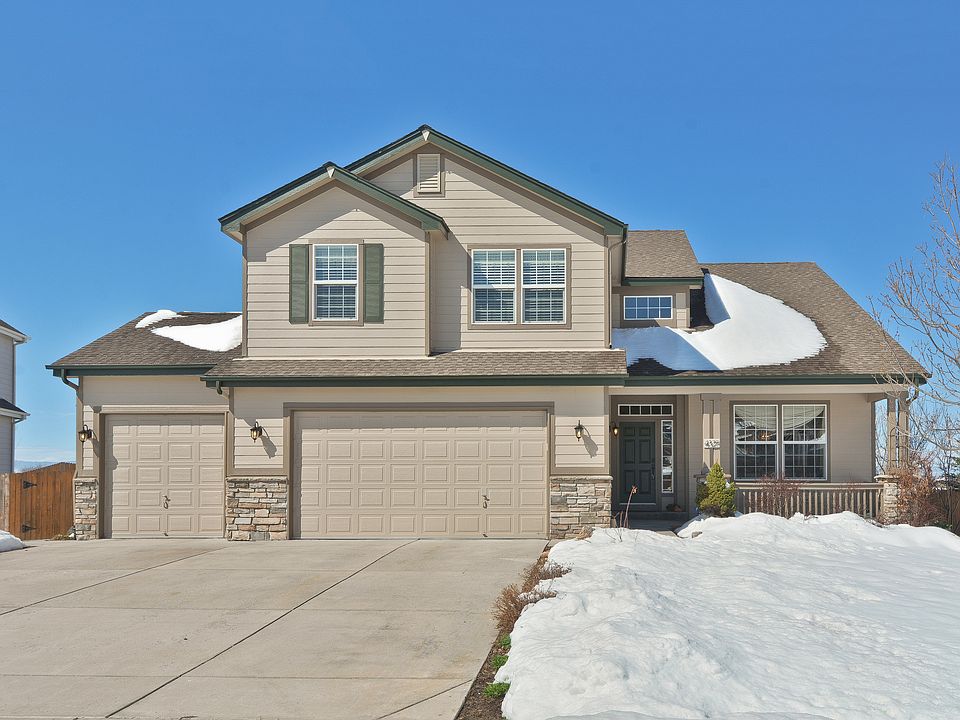 Meticulously maintained home by original owners! This gorgeous 4 BR open layout home sits on a quiet cul-de-sac that boasts 180 deg. panoramic mountain views of Pikes Peak. This is the largest model which offers a main floor bedroom/office/den, a HUGE Master bedroom with retreat, 5pc master bath, and a closet the size of most bedrooms! This home has been updated with granite countertops, 42 inch cabinets, tile floors, stone backsplash, professionally landscaped, and over 500 sq feet of zero maintenance deck spanning the length of the house. There's even a 10X15 reinforced portion of deck designed for a hot tub. The exterior paint was done 1 1/2 years ago that came with a 14yr warranty. If you need even more room, you'll have over 1520 sq feet of unfinished basement to finish to your liking. Wonderful HOA that incl access to a quiet community pool, fitness and rec center, tennis and basketball courts, playground, access to miles of hiking & biking on Rhyolite Park. Must See!!!