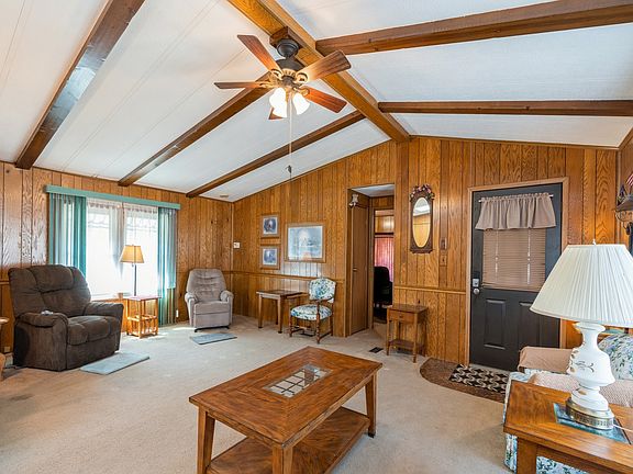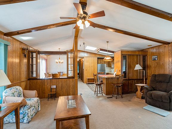 Why rent when you can own this affordable home in Stover Heights Mobile Home Park. Two bedroom, 1 ½ Bath, Open living room and kitchen with breakfast bar, Dining room with built in hutch, laundry room with washer/dryer. Updates include new appliances 1 yr., kitchen and bath flooring 1 yr., a/c new 2019, furnace new 2013, Roof new 2 yrs., driveway new 2022, Skirting new 2 yrs. and home releveled 2022. Covered porch with a long walkway to a covered porch area out back great for entertaining. With just a few new touches this home would be perfect. Convenient location close to schools, grocery and freeway/interstate.