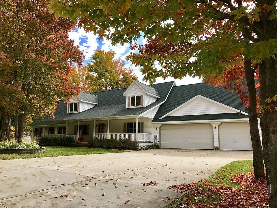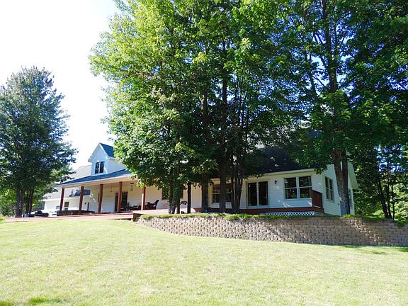 French County Design! This 6 bdr 4 bath home features an open floor plan accenting w/ hardwood floors, 2 story stone fireplace & stunning gourmet kitchen designed for entertaining boasting a seperate large formal dining area. Owners suite features private deck, walk in closets, ensuite bath w/ lifted soaking tub & separate shower. Covered front porch, landscaped yard, lower level fully finished, & spacious main floor laundry/mud room. Home sits on 20 acres w/ 48x60 insulated barn w/ wood stove & loft, & 60x80 horse barn w/ water & electric.