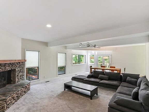 BEAUTIFUL 4 BEDROOM/3 FULL BATH CONTEMPORARY HOME. ENTRANCE FOYER. LIVING ROOM WITH STONE FIREPLACE. DINING & LIVING ROOM COMBO. KITCHEN W/BREAKFAST AREA, WHITE CABINETS, STAINLESS STEEL APPLIANCES. 2 BEDROOMS ON MAIN LEVEL SHARE A FULL BATH. MASTER BEDROOM W/FIREPLACE ON SECOND LEVEL W/MASTER BATHROOM & WALK-IN CLOSET. FULL FINISHED BASEMENT W/1 BEDROOM & 1 FULL BATH. LARGE DECK OVERLOOKING WOODED AREA. 2 CAR GARAGE. MUST SEE!