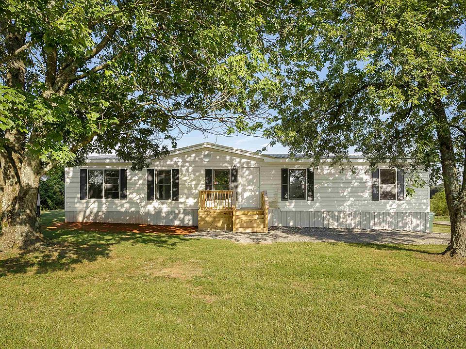 Beautifully renovated 3 bedroom, 2 bathroom mobile home on half an acre! Move-in ready, this home features a spacious master suite with garden tub and separate shower. Recent updates include new flooring, an 8-year-old roof, and a 2-year-old HVAC system for peace of mind. The open layout offers fresh updates throughout, with a bright kitchen and plenty of counter space. Outside, enjoy a half-acre lot with room to relax, garden, or play—with additional acreage available for purchase if desired. Affordable and stylish, this home is the perfect blend of comfort and space! All information to be verified by purchaser.