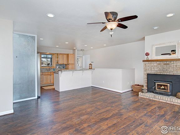 Beautifully Updated Ranch! No HOA! Room for a shop! Quick access to the I-25 corridor for easy commute. This is truly a rare find. Open, sunny floor plan. The kitchen has maple cabinets & new stainless appliances, large living room with wood burning fireplace, spacious family room has a cozy wood stove. Both bedrooms in the lower level have built-ins. Large composite wood deck opens to huge private yard so bring your toys! Farm-feel, complete with 2 storage sheds, chicken coop & gardens.