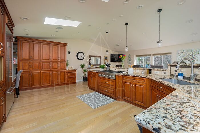 Don't miss this rare opportunity to live in an absolutely stunning, fully remodeled tri-level home in the desirable Donner Springs neighborhood. The chef's dream kitchen boasts abundant cabinet space, Jenair appliances, a Thermador range top, and double ovensperfect for those who love to cook and entertain. The expansive kitchen flows into a spacious dining area, making it ideal for gatherings. Step down into the cozy living room, complete with a wood-burning fireplace, bar area, and floor-to-ceiling windows that overlook the beautifully landscaped backyard. Enjoy your own park-like oasis in the backyard with mature landscaping, a gas firepit, and a tranquil water featureperfect for relaxing or entertaining. This home offers a full bedroom and bathroom on the lower level, while the master bedroom and two additional bedrooms are located upstairs. Additional features include custom upgraded bathrooms, bar area, hardwood flooring throughout, a water softener, reverse osmosis system, and backup generator for added peace of mind. Don't waitthis incredible home won't be available for long! This property allows self guided viewing without an appointment. Contact for details.