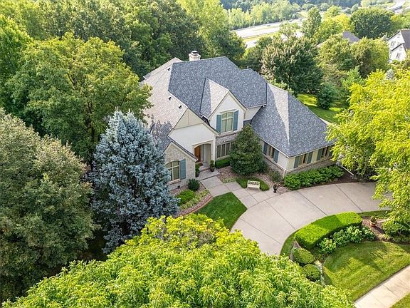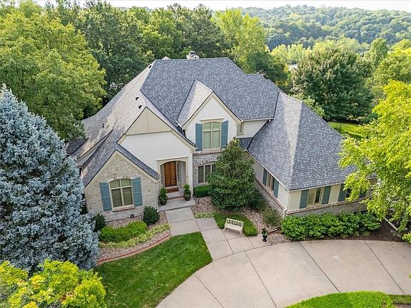 Elegant 1.5 story home offers a sophisticated Classic style with incredible views of the downtown KC skyline from multiple rooms in the home. Each of the 4 bedrooms has it's own bath, w/primary suite & 2-1/2 baths on main floor. Primary suite has lg. walk-in closet w/cedar storage & built ins. Bath has dbl. vanity, makeup area, built-ins, separate shower & bidet. Custom kitchen has dental crown molding, Edwardian leaded glass doors on lighted cabinets for display. Granite counter tops, roll-out drawers, gas stove w/down draft venting, beautiful island with Wenge wood top, lg. walk-in pantry w/pass-thru door to 4 car garage for grocery unloading! 2 convection & electric ovens & wood front fridge & new dishwasher. Adjacent is an eating area & hearth room w/pass thru fireplace (custom stucco) into the sitting room. Hearth mantle is old wood beam recovered from historic NKC school (Dagg bldng)The 2 story foyer has a grand 8' wooden door and is divided by elegant French doors from the library/office to the left & formal dining room to the right. Plantation shutters, crown molding, hight ceilings and stereo sound throughout main floor. Utility/laundry rm has builtin cabinetry & wooden office desk. Upper level open hallway features built-in shelving & a lg walk in cedar closet @ the end w/attic entry to lots of space for storage or finishing. Loft/study room shares the closet wall & could easily be made into a 5th bedroom. Laundry shoot in hallway. Finished basement w/ 2nd kitchen w/new dishwasher, surround sound, pool table area and walk out access. Bonus room w/full bath could be a 6th bdrm or guest qtrs. Dining area & bar, stunning custom fireplace, entertaining ready! Lg storage room w/built in wood shelves, workbench & work area w/ outdoor access to beautiful landscaped yard w/ patio & 2tiered deck Sq Ft for living area obtained from previous listing thru RPR. NEW updates:ROOF, 15 Windows, Insulation&Electrical Box Upgrade. Buyers/agents verify #s, taxes, schools