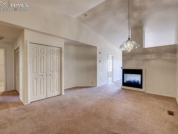 Maintenance free, one level living in a gated community with attached 2 car garage & garage remotes! A rear deck area gives you plenty of space to enjoy quiet mornings and evenings with your loved ones and allow the mountain range views to take your breath away! Step inside and you are greeted with the living room featuring a vaulted ceiling and a 3 way gas fireplace for extra warmth on those cold winter days. On the other side of the fireplace you will discover a cozy formal dining area with vaulted ceilings and your large open kitchen which gives you plenty of space to chef up some amazing meals plus an eat in kitchen/dining nook area! Both bedrooms have attached bathrooms for the ultimate in convenience. The master bedroom boasts a walk in closet & adjoining 4 pc en-suite with a double vanity and spacious linen closet. The 2nd bathroom connects to both the main hallway and the 2nd bedroom. The generously sized windows allow for copious amounts of sunlight and a great view of Colorado's vibrant blue skies. Easy access to Powers corridor with lots of restaurants, shopping & entertainment, easy access to the Colorado Springs Municipal Airport, I-25, Peterson Air Force Base & Ft. Carson. You will be sure to enjoy the privacy of the gated community, as well as the maintained lawns and pathways! This condo is a perfect blend of comfort, style and convenience & move-in ready for you. Don’t miss out on this GEM!!!
