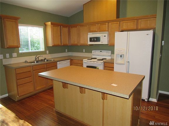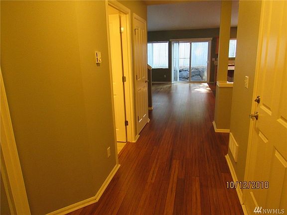 Gorgeous townhome located in The Pointe neighborhood. Open and bright with vaulted ceilings. Solid bamboo hardwood floors throughout. Kitchen with island and all appliances included. Fenced yard which backs up to the forest area and 1 car attached garage. Conveniently located close to many local businesses and JBLM.