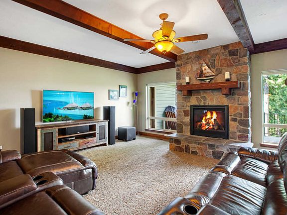 Gorgeous home on 2.6 acres in gated community of Harbor View Estates! This immaculate home shows quality through-out to include 5 BD & 4.5 BA w/main floor living, granite features, hardwood floors & breath-taking views. Large great room w/rock fireplace that flows into the gourmet kitchen w/breakfast bar, built-in cabinets, stainless appliances & formal dining. The master is furnished w/a gas fireplace, huge naturally lit walk-in closet, soaking tub, tiled shower & dual vanity. Large bonus room upstairs with fantastic mountain & territorial views. Entertain in the basement w/a great room, bed & bath and its own entrance! Home has an oversized 3 car garage, multiple viewing decks & much more. Complete w/a private community beach. Boat slips are available to purchase!