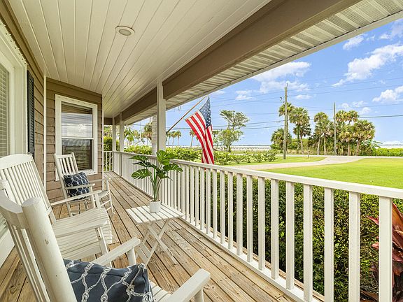 Special Banana Riverfront Home designed to maximize river breezes from wrap-around porch. NEW 2023 ROOF, SCREENED POOL and 3-car garage. Hurricane Shutters. Upstairs theater room or playroom area. Ground floor bedroom and full bath. Upstairs Primary Suite with best river views and sunrises, bonus office or nursery adjoining. Plantation Shutters. Newer Showers. His and hers walk in closets with a linen closet. Cedar siding. Nearly 200 ft Dock with 10 x 20 ft platform for fishing and sunning all refinished in 2017 with new roof to the dock. Bananas growing and lovely shade trees ready for a swing!