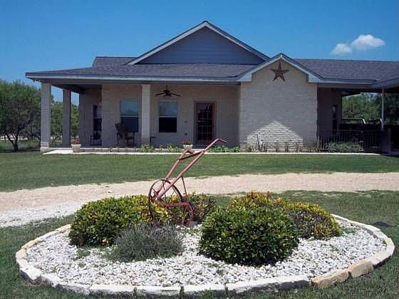 Beautiful country setting. 5.5 acres with one-story all masonry custom-built home. Bring your horses. Illuminated arena, pens, and stalls. Wrap-around porch is the perfect place to unwind, enjoy breeze & take-in countryside. Tile in all areas except for bedrooms. Soaring 12-ft ceilings, crown moulding, solid wood doors, ceiling fans in all rooms, bead board, rock accents, large closets. Refrigerator conveys. Covered back porch, granite paths, & above-ground pool in back